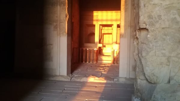 بدون احتفالات..تعامد الشمس على قدس أقداس معبد قصر قارون بالفيوم (صور)