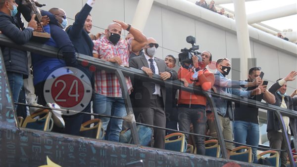 وتواجدت سيارة مكشوفة من أجل أن تقل البطل ومعه الدكتور أشرف صبحي، وزير الرياضة، الذي سيحضر اليوم لاستقباله بأحد فنادق القاهرة من أجل مؤتمر صحفي بعد الإنجاز الكبير الذي حققه.