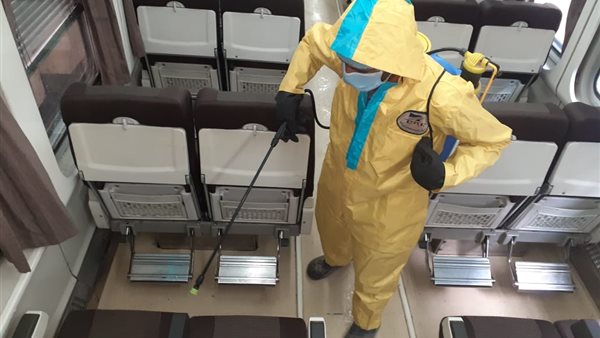 واصلت وزارة النقل عمليات التطهير والتعقيم داخل الهيئات والقطاعات التابعة للوزارة، بالتزامن مع ارتفاع اعداد مصابي فيروس كورونا المستجد وبدء انتشار الموجه الثانية، وشملت عمليات التعقيم تطهير القطارات التابعة لهيئة السكك الحديدية داخل الورش الخاصة باستعدادات القطارات المتنوعة، فضلا عن تعقيم المحطات بشكل دوري ومستمر فى جميع المحافظات.
