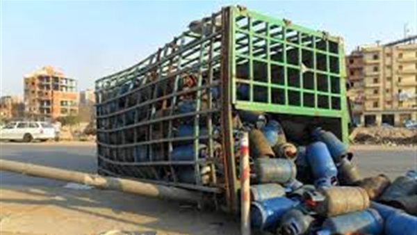 انقلاب سيارة أسطوانات غاز بطريق الإسماعيلية القاهرة الصحراوي