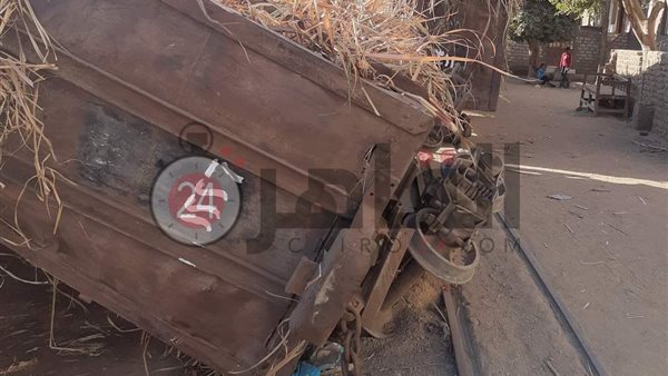 انقلاب قطار قصب "الديكوفيل" بمدينة السباعية بإدفو (صور)