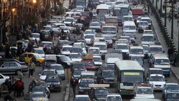 سيارة نقل تتسبب في اختناق مروري لمدة 60 دقيقة أعلى كوبري 15 مايو ببنها