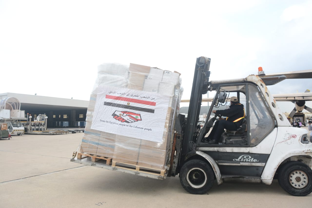 تفريغ شحنة المساعدات المصرية إلي دولة لبنان (صور)