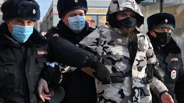 وانطلق الشعب الروسي في مظاهرات عارمة منذ منتصف يناير الماضي، بعدما تم إلقاء القبض على أليكسي نافالني بصورة مفاجئة على ذمة قضية ترجع لـ2014، أثناء حضوره لجلسة استماع بالمحكمة.