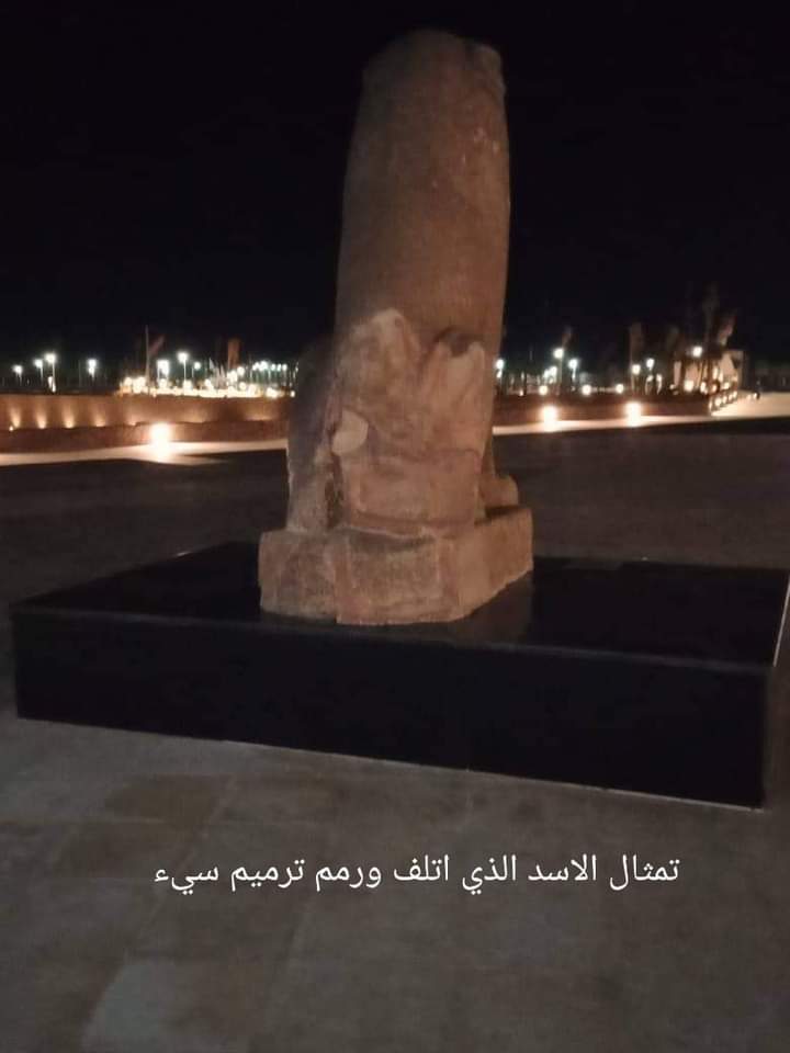 وتواصل "القاهرة 24"، مع مصدر بوزارة السياحة والأثار لظهور حقيقة الصور المتداولة، وقال المصدر، إن الصور صحيحة والصور توضح تمثال الأسد المتواجد خارج المتحف تعرض للتلف والكسر، ويدل على ترميم تمثال الأسد بطريقة سيئة ومستعجلة.