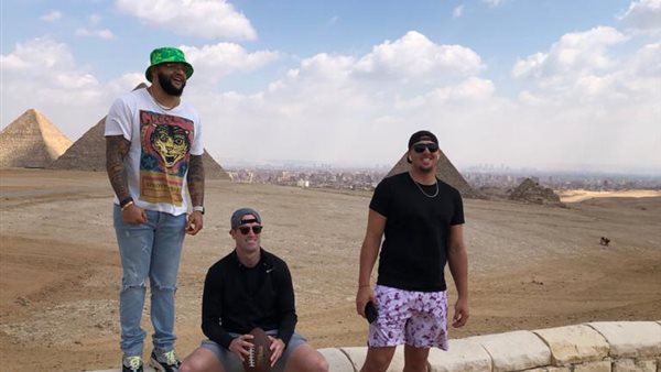 وصل مطار القاهرة الدولي، فجر اليوم الخميس، ثلاثة من نجوم لاعبي الدوري الوطني لكرة القدم الأمريكية الذين جاءوا إلى مصر في جولة سياحية ترفيهية لقضاء إجازتهم والاستمتاع بالجو الدافئ والأماكن المفتوحة والشمس الساطعة، بالإضافة إلى زيارة المعالم السياحية والمواقع الأثرية للتعرف على الحضارة المصرية العريقة.