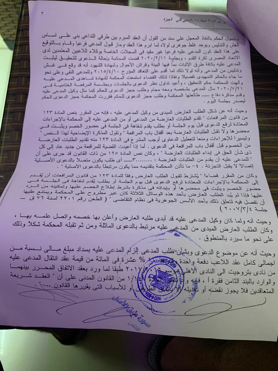 وتابع أن وكيل الشناوي السابق حصل على تأييد نفس الحكم من المحكمة حكم نهائي.