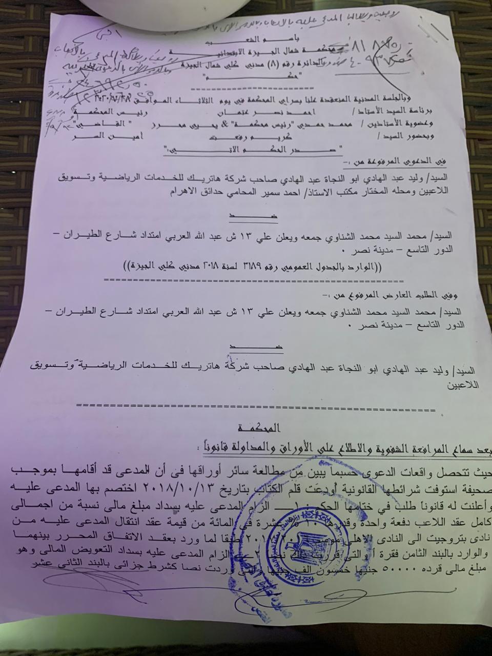 المحكمة تلزم محمد الشناوي بسداد مليون و550 ألف جنيه لوكيله السابق