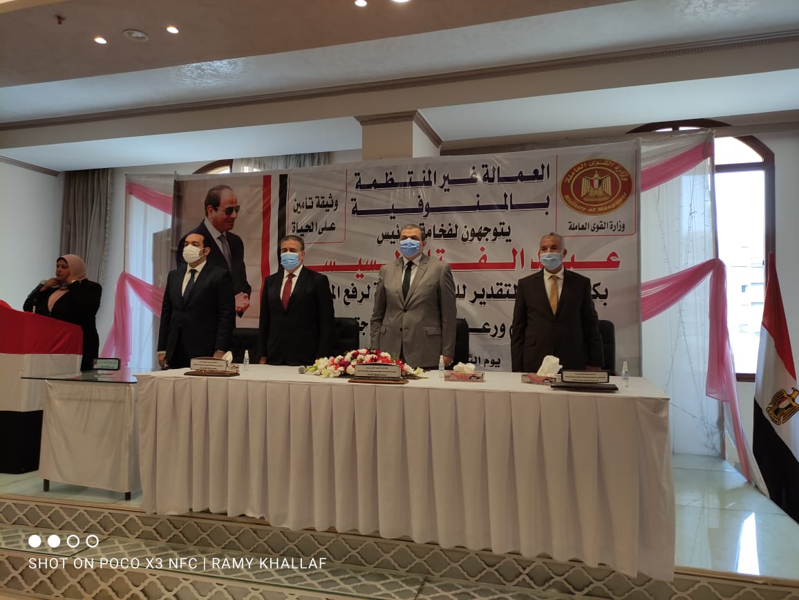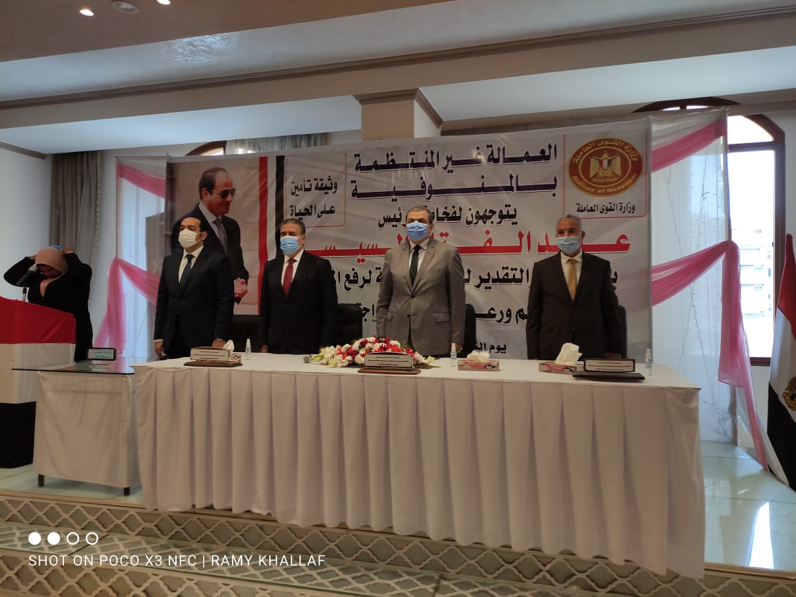 وصول وزير القوى العاملة المنوفية لتسليم وثائق التأمين على الحياة للعمالة الغير منتظمة ( صور)
