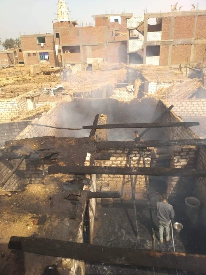 على الفور انتقلت إلى موقع البلاغ، قوات الأمن والشرطة، وسيارات الإطفاء وسيارات الإسعاف، وقوات الحماية المدنية، وضباط المباحث، وبالفحص والمعاينة تبين اندلاع حريق بـ6 منازل، ملك كل من على شاكر هاشم، وعلى عبدالمنعم محمد ، وسالم عبدالمنعم محمد، وشفيق بخيت محمد، وصابر هاشم عبدالعال، محمد عطية شاكر.