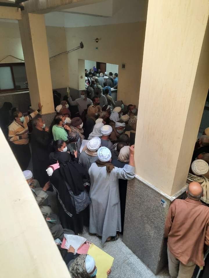 شهد مبنى عيادة "سيدي عبدالرحيم" الخاصة بالتأمين الصحي بمدينة قنا، تكدس العشرات من المواطنين أمام المبنى وداخله لإنهاء بعض التعاملات، الخاصة بالتأمين الصحي، ما يهدد بتفشي فيروس كورونا المستجد، وذلك بالرغم من التحذيرات بعدم الزحام في ظل زيادة معدلات الإصابة بالفيروس خلال الفترة الأخيرة بالمحافظة.