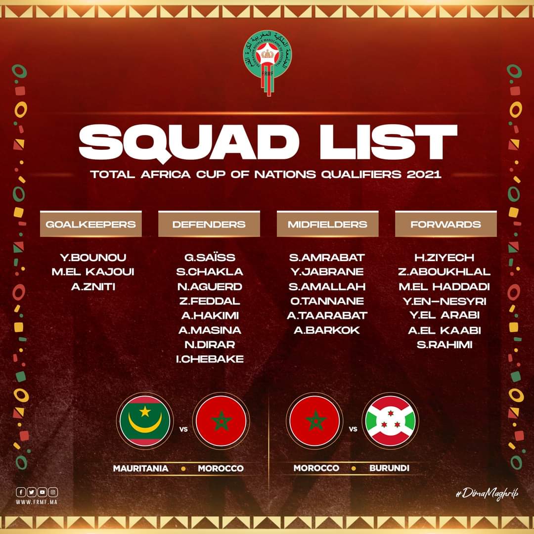 ويستعد منتخب المغربي لخوض مباراتي موريتانيا وبورندي في التصفيات المؤهلة لكأس أمم إفريقيا، المقرر إقامتهما في السادس والعشرين والثلاثين من مارس الجاري
