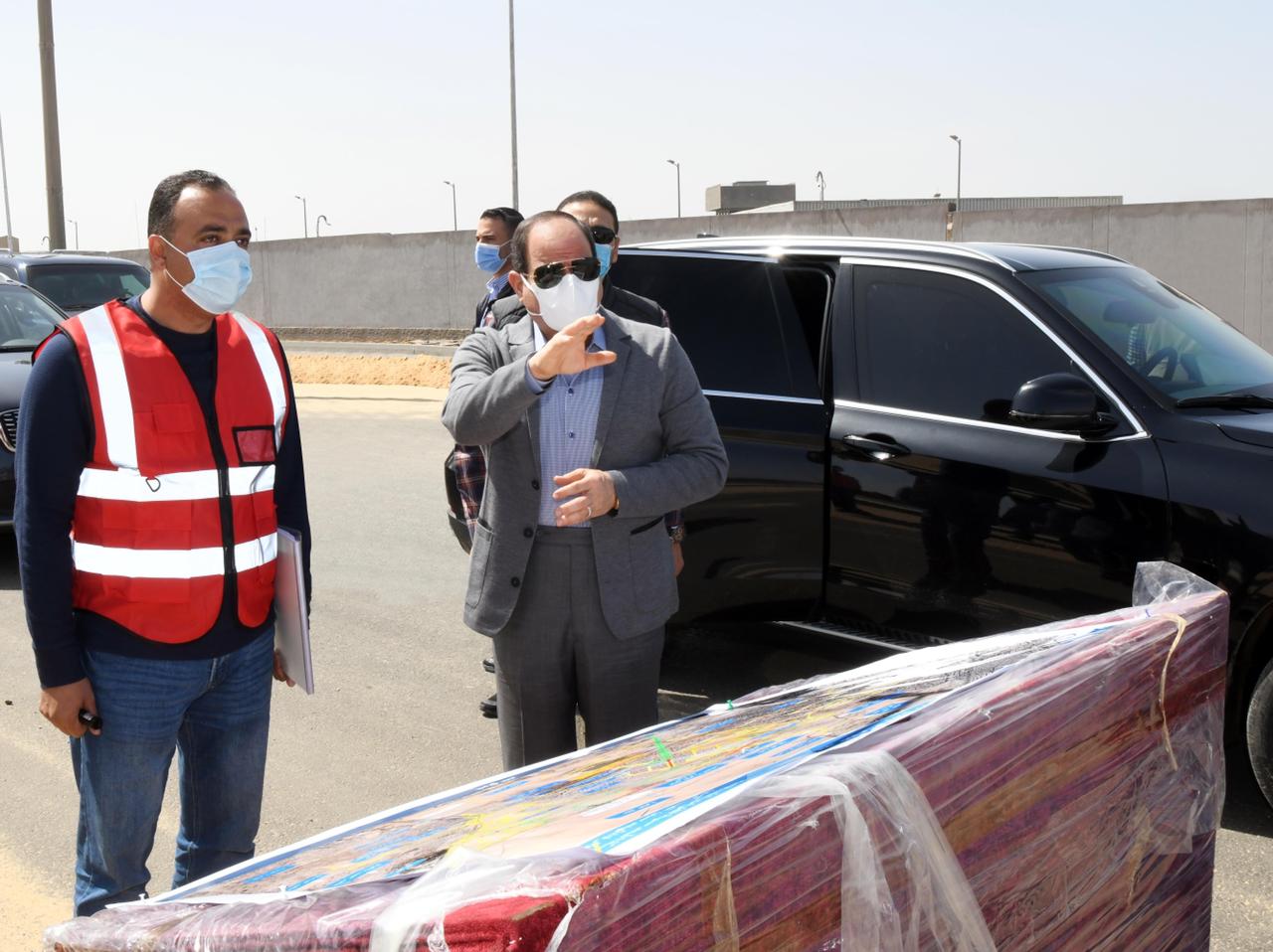 وقد أطلع أحد المسئولين بأحد مواقع العمل بمنطقة التجمع الخامس الرئيسَ على الموقف التنفيذي لعدد من المحاور والطرق، ووجه الرئيس بضمان توفير كافة الخدمات اللازمة للمركبات ومرتادي الطرق الجديدة، أخذاً في الاعتبار الأهمية الكبرى لتلك المحاور في تعزيز عملية التنمية وتنظيم الحركة المرورية وسرعة التنقل.