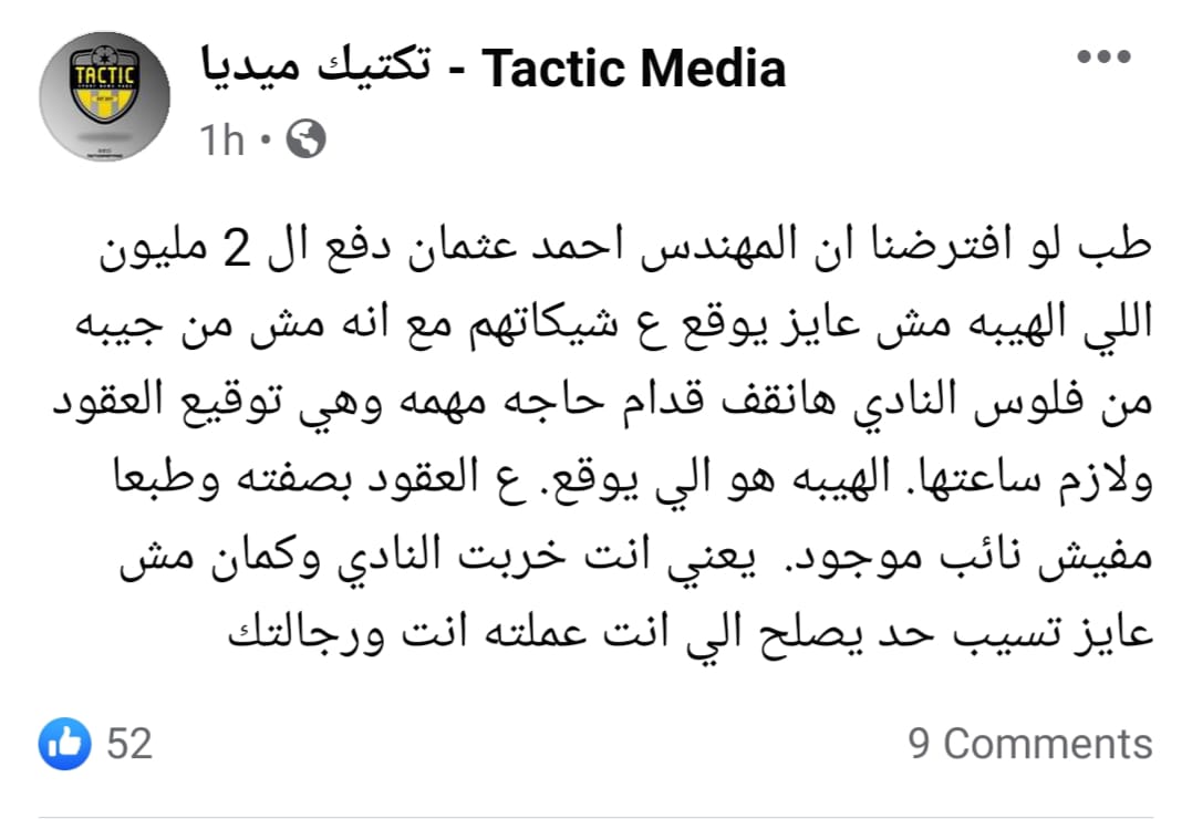 وطالب بعض الجماهير شقيق رئيس النادي أحمد عثمان المشرف العام على الكرة بنادي الإسماعيلي، بدفع المبالغ الخاصة بالصفقة من ماله الخاص، تحسبًا لضياعها، ولعدم إهدار الوقت، ثم محاسبة شقيقه فيما بعد، مؤكدين على ضرورة تحمله نتائج ما يفسده إبراهيم عثمان.