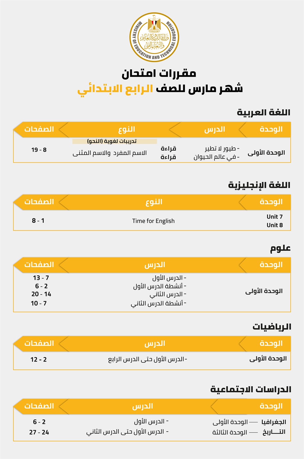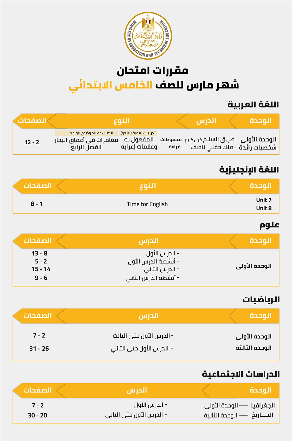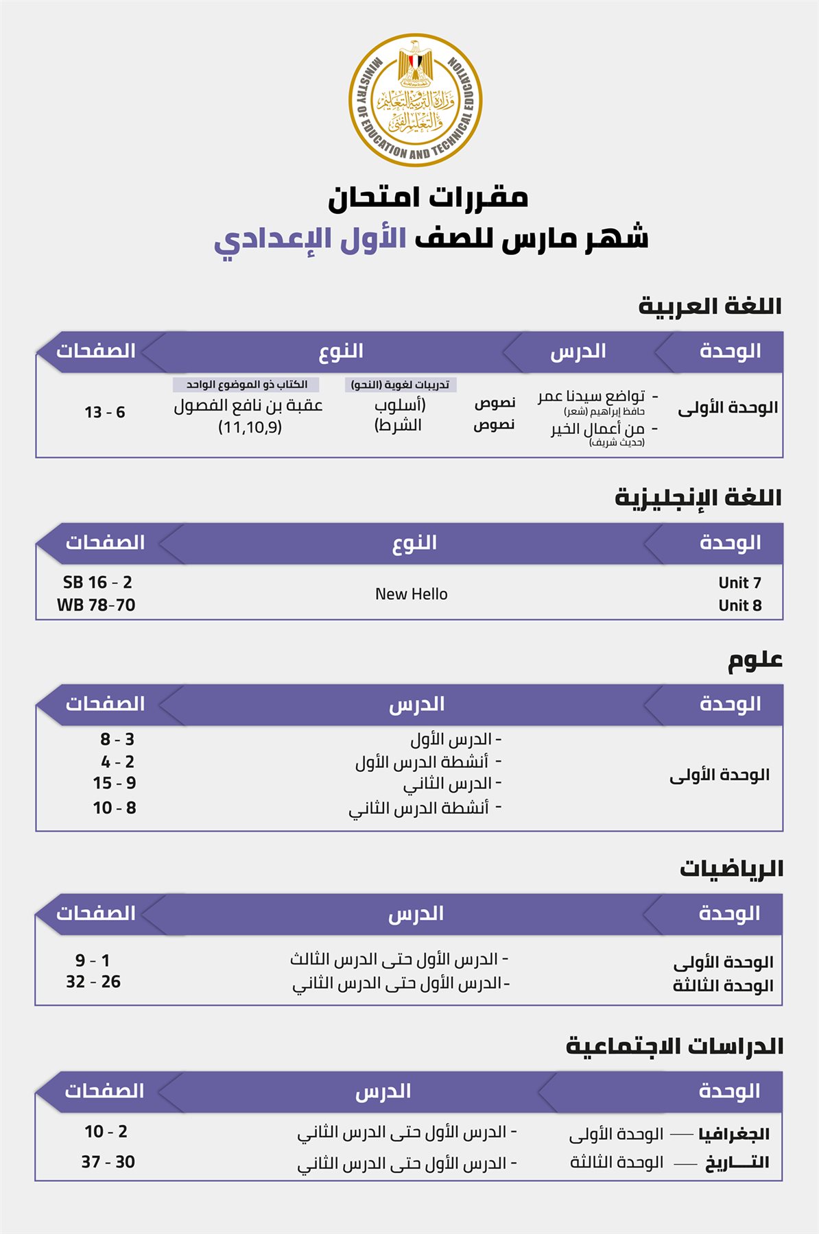 وكانت وزارة التعليم، قد أعلنت مناهج امتحانات شهر مارس، والتي جاءت كالتالي:
