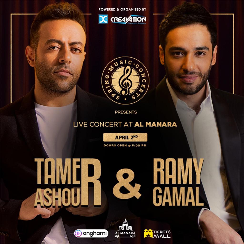 كما يحي النجم تامر عاشور الليلة الثانية من الموسم يوم 2 أبريل القادم ويشاركه في إحياء هذه السهرة النجم رامي جمال.