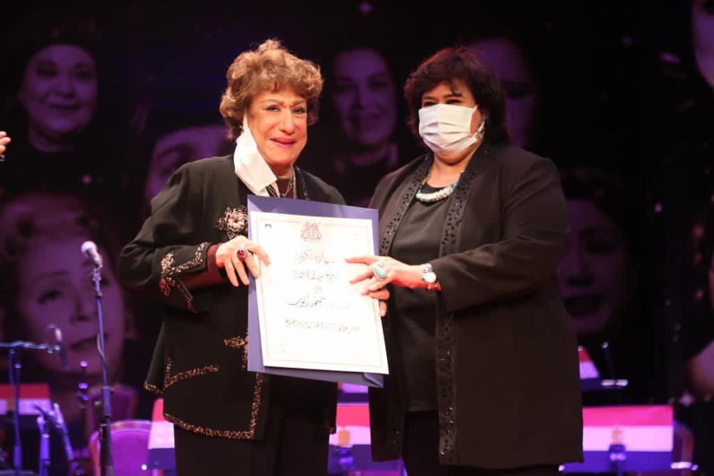 أهدت وزيرة الثقافة شهادات تقدير للفنانات القديرات سميحة أيوب، سميرة عبد العزيز، ليلى طاهر، رجاء حسين، الدكتورة سميرة محسن، مديحة حمدي، فردوس عبد الحميد، فتحية طنطاوي، الناقدة الكبيرة عبلة الرويني، السيدة سهير عبد القادر، الدكتورة عايدة عبد السلام إلى جانب 3 من العاملات، وهن آمال فؤاد عوض مدير إدارة السكرتارية، مديحة محمد رشاد بمكتبة القاهرة الكبرى، وعلا عبد الفتاح علي عبد الله بإدارة التراخيص الفنية.