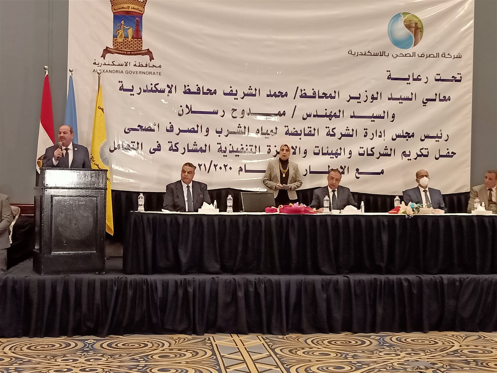 وأفاد محافظ الإسكندرية بأننا اليوم نحتفل بتجاوز المحنة، حيث إن نوات الشتاء كانت محنة على المحافظة وشركة الصرف الصحي، ولهذا يجب تكريم العمال وكل من بذل الجهود في موسم الشتاء.