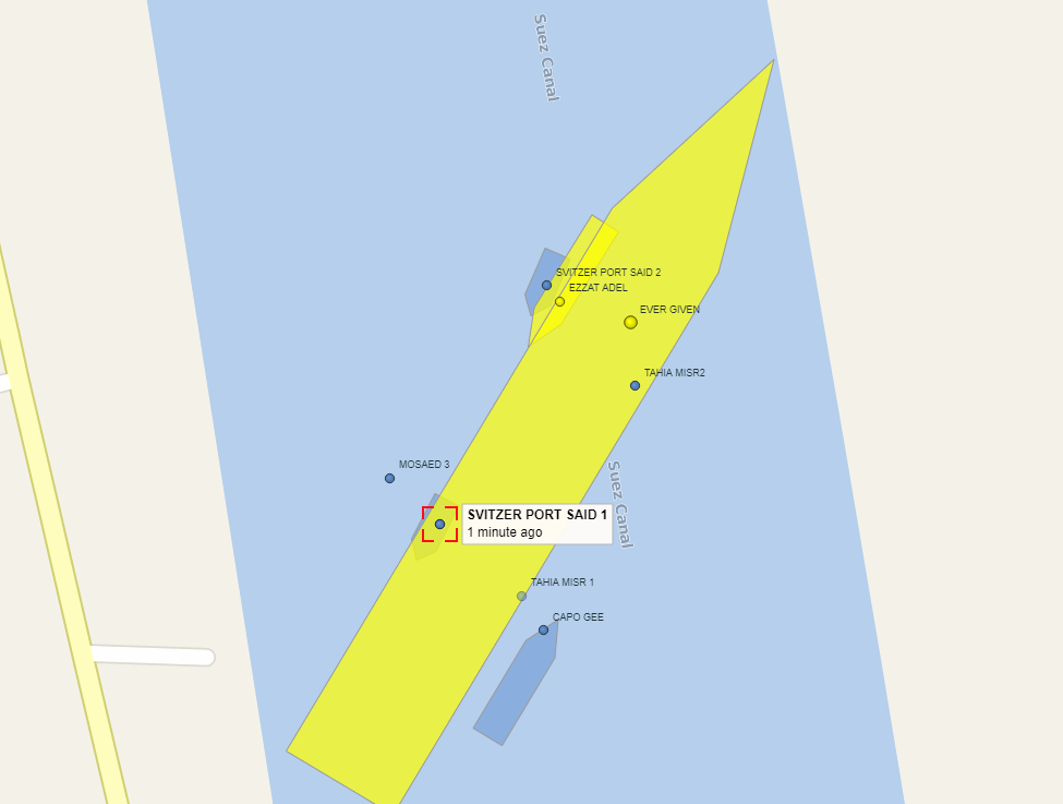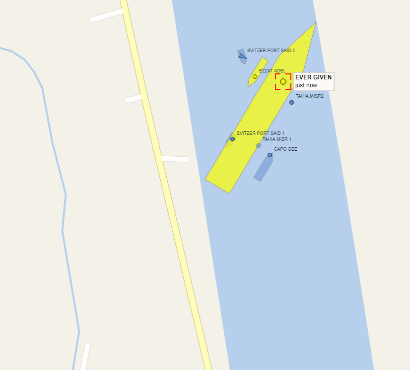 وترصد الصور شحوط السفينة بعرض ممر قناة السويس، وهو ما أدى إلى تعطل ما يقرب من 53 سفينة، بحسب ما رصدت منصة البيانات المتخصصة في تعقب حركة الملاحة البحرية العالمية، في الوقت الذي رصدت في الصور أيضًا عطول ما يقرب من عشرات السفن داخل ميناء بور سعيد وخرين في بور فؤاد.