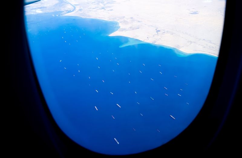 صورة بالأقمار الصناعية لمجرى قناة السويس والسفينة الجائحة