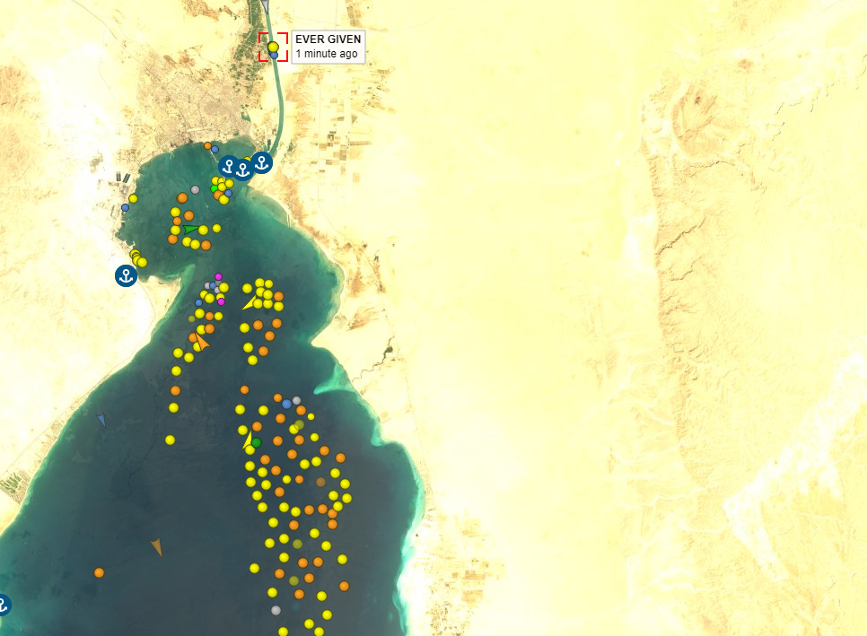 وحسب موقع تتبع السفن والموانئ https://www.vesselfinder.com/ ، لا تزال عشرات السفن في انتظار الانتهاء من العملية بالكامل، والتي تقوم عليها نحو 14 كراكة.