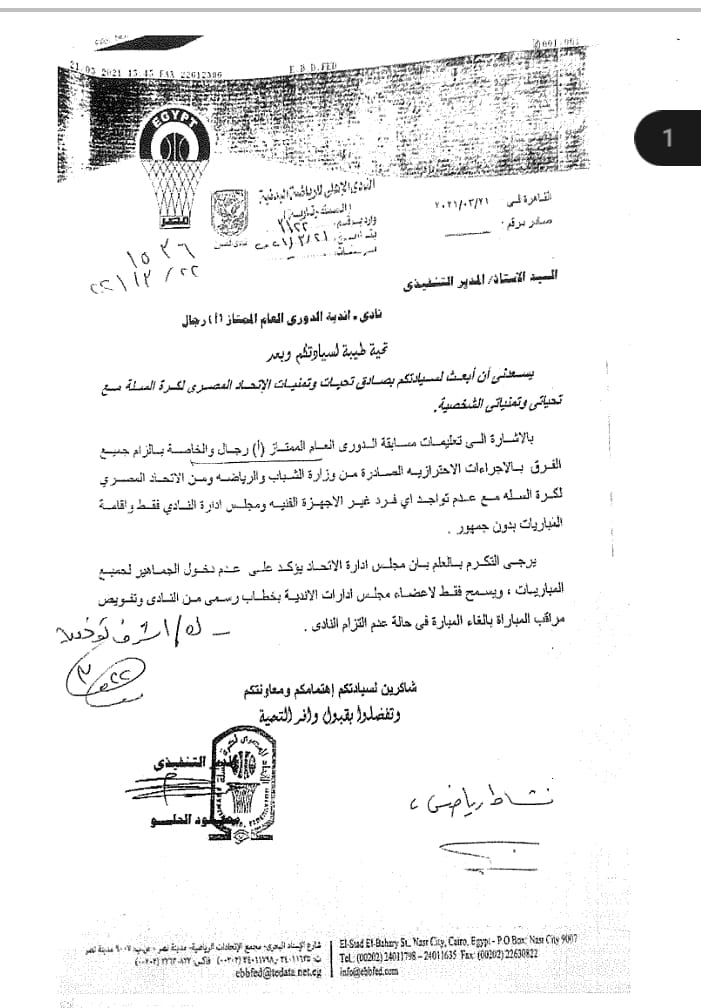 وأعلن مدير النشاط الرياضي بالأهلي أن النادي أرسل خطابًا صباح اليوم لاتحاد كرة السلة؛ لحفظ حقوق الأهلي، وتطبيق اللوائح على الجميع.