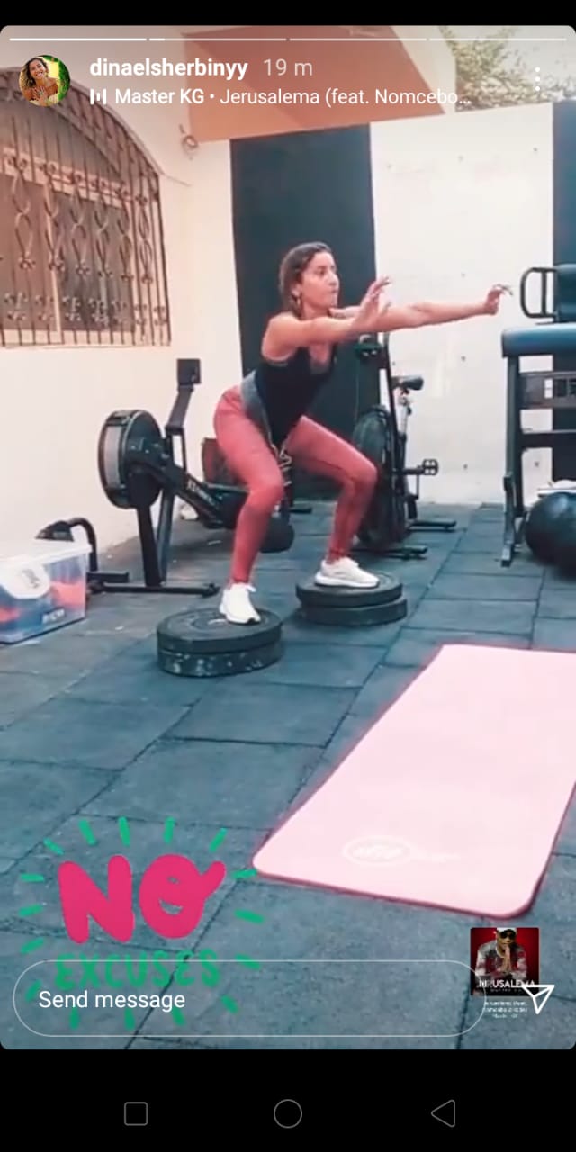 ونشرت الشربيني مقطع الفيديو، عبر خاصية "ستورى" على حسابها الشخصي بموقع تبادل الصور والفيديوهات القصيرة "انستجرام"، وظهرت دينا في الفيديو مرتدية الملابس الرياضية.