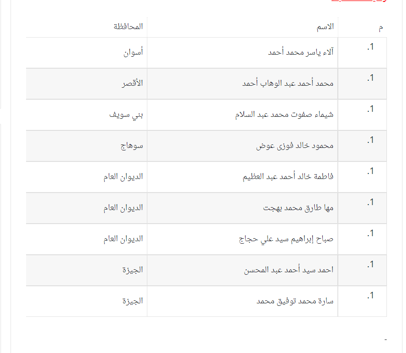 ونشرت "الأوقاف" أسماء الناجحين في مسابقة الأوقاف نظام الأجر مقابل عمل المجموعة السادسة عشرة للتعاقد، على النحو التالي: