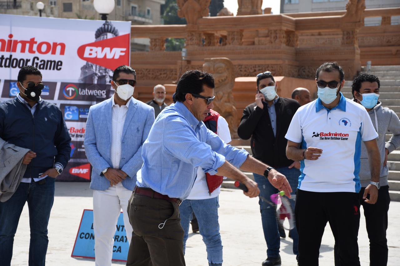 شهد الدكتور أشرف صبحي، وزير الشباب والرياضة، مهرجان الريشة الطائرة الهوائية والذي ينظمه الاتحاد الأفريقي للريشة الطائرة أمام قصر البارون بحضور هشام التهامي رئيس الاتحاد المصري للريشة الطائرة، هادية حسني عضو مجلس النواب.