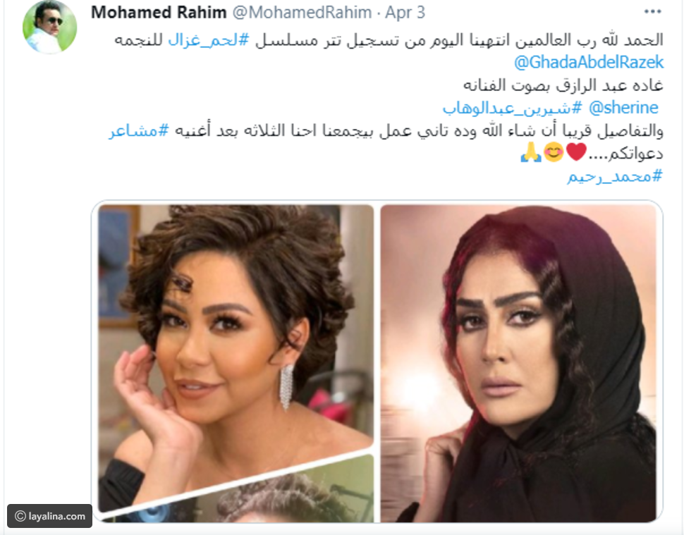 تغني المطربة شيرين عبد الوهاب، تتر مسلسل “لحم غزال” للنجمة غادة عبد الرازق، والمنتظر عرضه في الموسم الرمضاني المقبل 2021، وتتعاون المطربة مع الملحن محمد رحيم في ذلك التتر، ويعد ذلك هو التعاون الثاني بين كلا من “عبد الوهاب” و"رحيم" و"عبد الرازق"، بعد أغنية “مشاعر”، تتر مسلسل “حكاية حياة”.