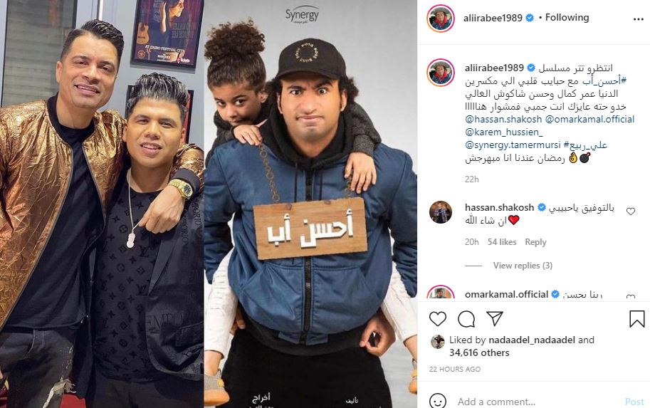 أعلن علي ربيع، بطل مسلسل "أحسن أب"، والذي يعرض في الموسم الرمضاني المقبل 2021، غناء مطربي المهرجانات، حسن شاكوش وعمر كمال، تتر العمل.