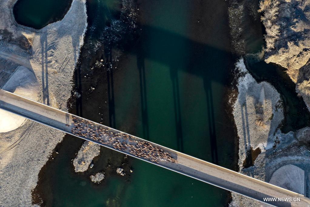 نشرت وكالة "شنخوا" الصينية صورًا ملتقطة، لرعاة يقودون الأغنام على جسر ساربولاك عبر نهر إرتيكس في طريقهم إلى المراعي الربيعية في محافظة فوهاي في ألتاي، بمنطقة شمال غربي الصين، ومع حلول الربيع، ينشغل الرعاة هنا بنقل الماشية إلى المراعي الربيعية.
