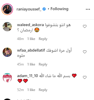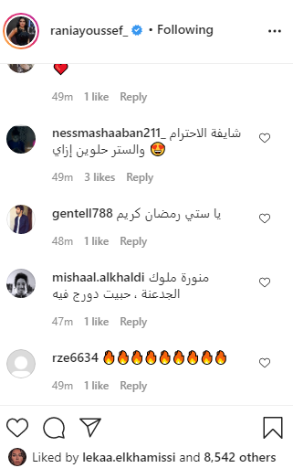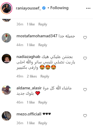 ونالت هذه الصورة إعجاب كثير من متابعيها، متمنين منها أن تستمر بهذا "اللوك"، وكانت من أبرز هذه التعليقات “شايفة الاحترام والستر حلوين ازاي”، “أول مرة أشوفك حلوة”، “يجنن عليكي هيك ياريت تضلي تلبسي ساتر والله أحلى وأرقي عليكي كتير”، “لبسك جميل جدًا”، “ماشاء الله أنيقة جدًا”.