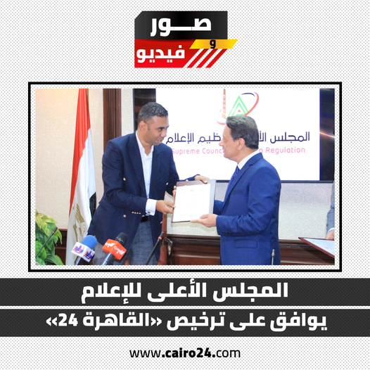ووافق المجلس الأعلى للإعلام على منح موقع "القاهرة 24" ترخيصًا بمزاولة نشاط موقع إلكتروني (تطبيق)، اليوم، ضمن مجموعة من المواقع والقنوات، وذلك في حفل حضره السفير الفرنسي وأعضاء المجلس وعدد من رؤساء تحرير المواقع الإخبارية.