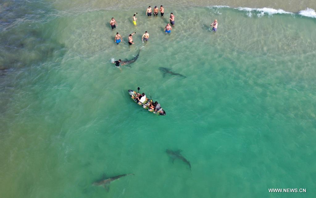 نشرت وكالة "شنخوا" الصينية صورًا ملتقطة، لإسرائيليين يسبحون بالقرب من أسماك القرش في البحر الأبيض المتوسط، قبالة ساحل مدينة الخضيرة شمالي الأراضي المحتلة.