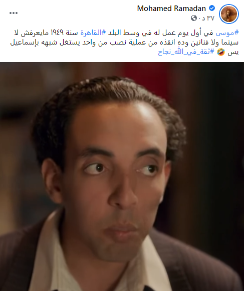 وقال رمضان: “موسى في أول يوم عمل له في وسط البلد القاهرة سنة 1949 مايعرفش لا سينما ولا فنانين، وده أنقذه من عملية نصب من واحد يستغل شبهه بإسماعيل يس”.
