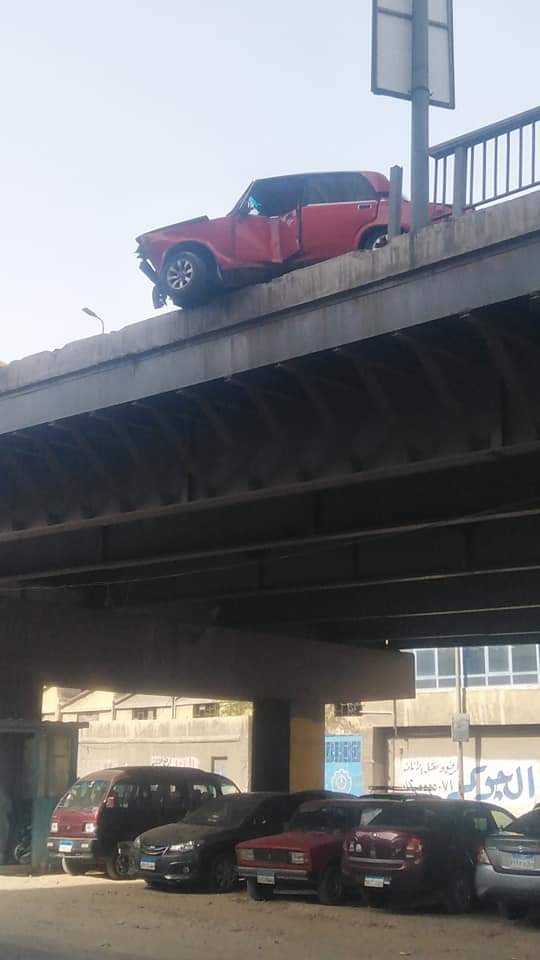 وأشار "علاء" إلى أن السيارة التي تعرضت للخروج عن الطريق توقفت بشكل مفاجئ، حيث كان النصف الأمامي منها بالفعل خارج حدود الكوبري، فيما أسند الجزء الخلفي السيارة من الوقوع لتشابكه بالحاجز الحديدي.