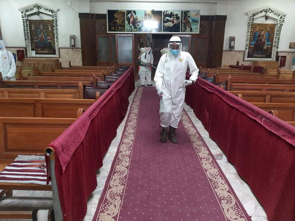 الجيش الثاني الميداني يبدأ تطهير وتعقيم دور العبادة بدمياط