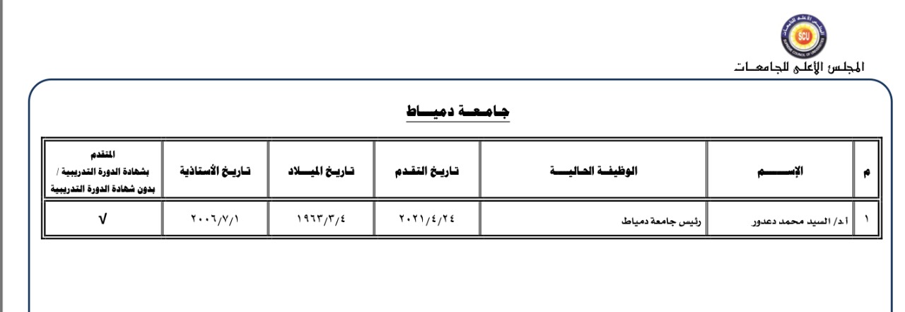 كما ضمت الأوراق، بيان حالة يشتمل على الإعارات والإجازات والمهمات العلمية بالخارج والجزاءات على أن يكون معتمدا ومختوما من الجامعة، بجانب خطة لتطوير الجامعة، ولابد أن تتضمن الأوراق المقدمة، شهادة الحصول علي الدورة التدريبية المؤهلة للترشح من أحد الجهات التي حددها المجلس الأعلى للجامعات، وفي حالة عدم وجود الشهادة عند التقدم، يجب تقديمها قبل إعلان القائمة النهائية واجتماع لجنة البت في الطعون وإلا سيكون التقدم لاغيا.