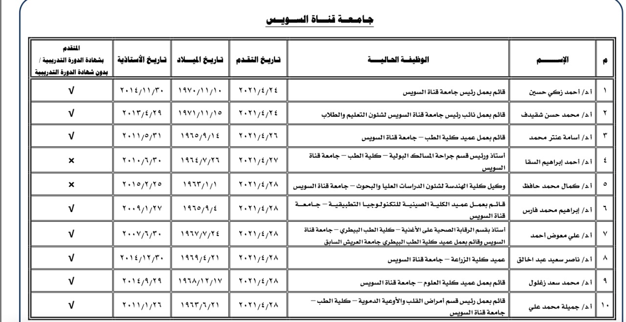 ينشر موقع ”القاهرة 24“ قائمة الترشيحات المبدئية لرئاسة 8 جامعات حكومية وهي: القاهرة - حلوان - دمياط - السويس - قناة السويس - سوهاج - بني سويف - بنها.