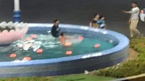 صورة لأطفال يسبحون في نافورة ببورسعيد تثير السخرية.. ورئيس الحي: تصرف غير مسئول