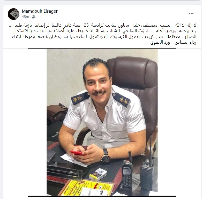 وفاة معاون مباحث قسم كرداسة نتيجة أزمة قلبية (صور)
