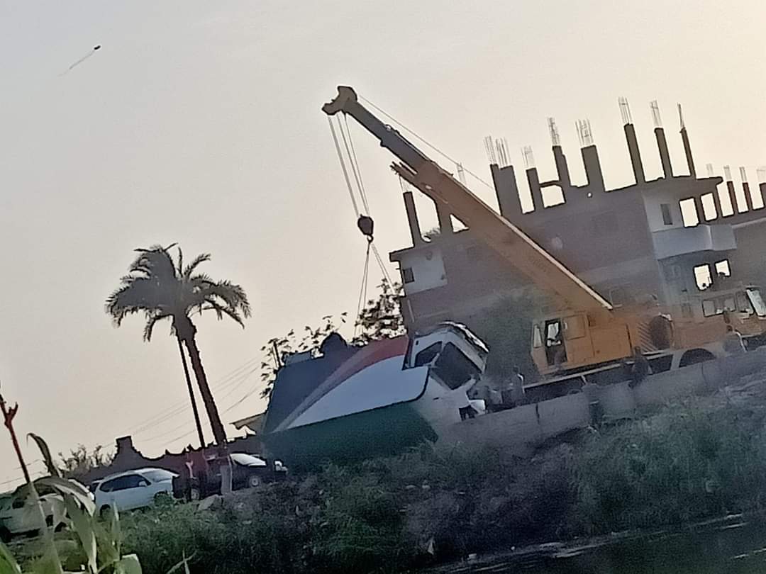 انتشال سيارة سقطت في نهر النيل بكفر شكر (صور)