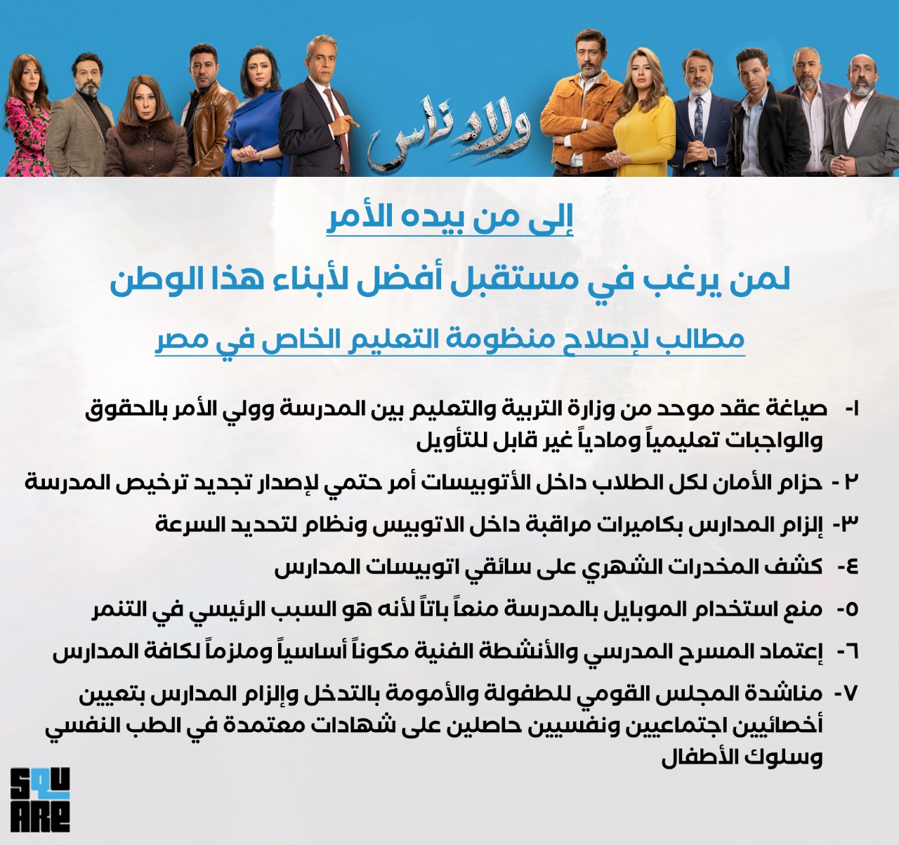 ووضع صناع العمل 6 بنود هامة في أحداث الحلقة الأخيرة، كروشتة لإصلاح منظومة التعليم والتربية، أولها حتمية وجود أحزمة الأمان داخل أتوبيسات المدارس وإجراء الصيانة الدورية لها، وثانيها وجود عقد موحد بين المدارس الدولية وبين أولياء الأمور يضمن حسن العملية التعليمية، مع وضع كاميرات مراقبة في كل مكان سواء المدرسة أو الأتوبيسات وربطها بنظام داخل المدارس، إضافة إلى إعادة الفنون والرياضة داخل المدارس بكافة أنواعها لتنمية الطلاب وخلق روح الفن في الطفولة والأخلاق الرياضية، ومنع استخدام الموبايل داخل المدارس بشكل قاطع.