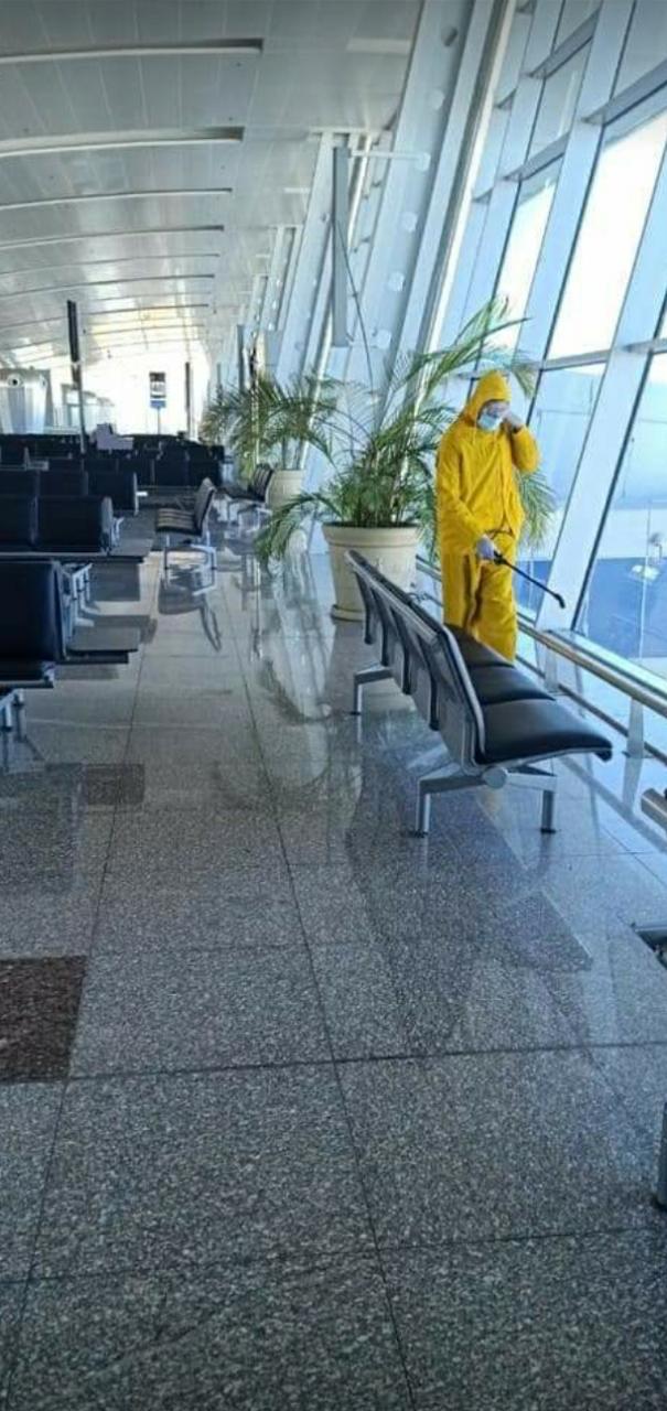 وشملت عمليات التعقيم جميع صالات السفر والوصول بالمطارات ومناطق سيور الحقائب وعربات نقل الأمتعة وكاونترات إنهاء السفر والوصول والجوازات وجميع المرافق بالمطارات.