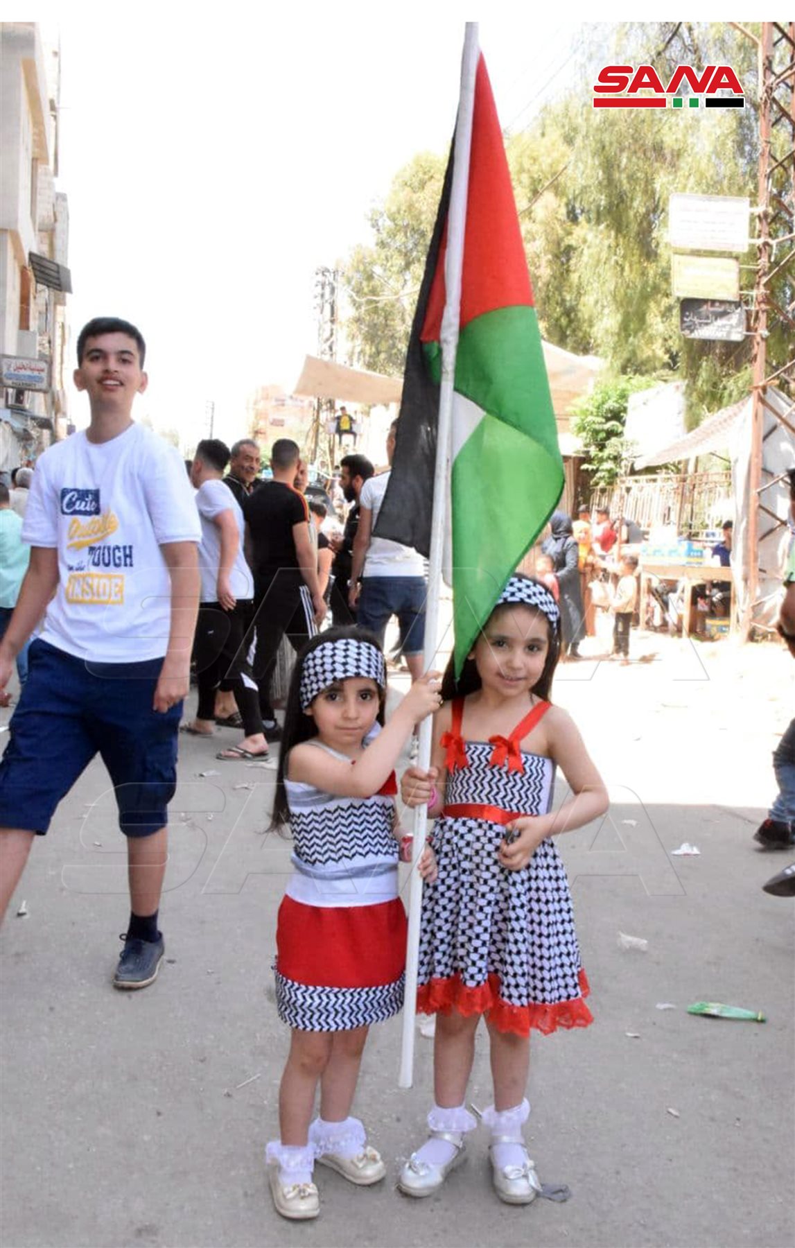 ونشرت وكالة الأنباء السورية على حسابها بموقع تويتر، صورًا لمسيرة شعبية بحي العائدين في محافظة حماة، تنديدًا بالعدوان الإسرائيلي المتواصل على القدس وقطاع غزة.