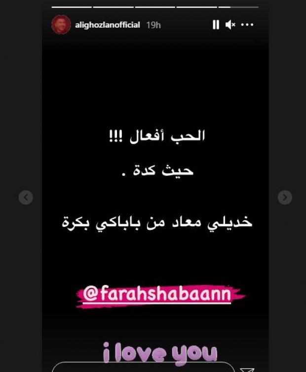 وكان غزلان، أعلن رغبته في التقدم للزواج فرح شعبان" من خلال القصص المصورة على موقع "انستجرام".