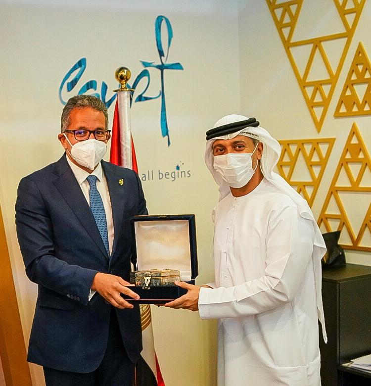 وخلال اللقاء، قدم الوزير الإماراتي الشكر للوزيرين على حرص مصر على المشاركة في الملتقى العربي للسياحة والسفر “ATM 2021”، مقدماً أيضاً التهنئة للدكتور للعناني على النجاح الذي حققه موكب نقل المومياوات الملكية والذي كان حدثاً استثنائيا أشاد به العالم.