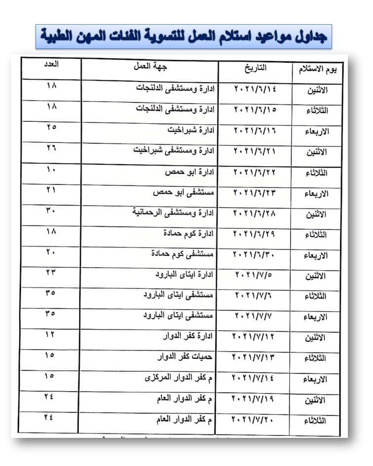 ننشر مواعيد استلام العمل لتسوية فئات المهن الطبية وغير التمريضية بالبحيرة