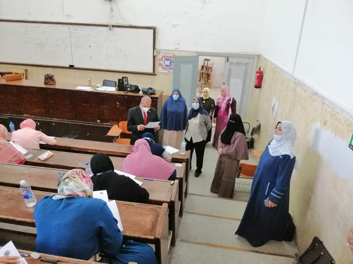 من جانبها أكدت الدكتورة شفيقة الشهاوي، عميدة الكلية، أنه سبق عقد لجان الامتحانات عمليات رش وتطهير وتعقيم لجميع قاعات الامتحانات، مشيرة إلى أن إدارة الكلية موجودة منذ الصباح الباكر ممثلة في الدكتورة فاطمة الباجوري، وكيل الكلية للدراسات العليا والبحوث، والدكتورة سعاد أبو المجد، وكيل الكلية لشئون التعليم والطلاب.